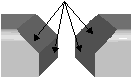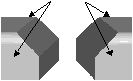 結束面是指定義熔珠起始與終止處的面。在每個零組件上,選擇與接觸面共用一條邊線的兩個面(或兩組相鄰的面)。