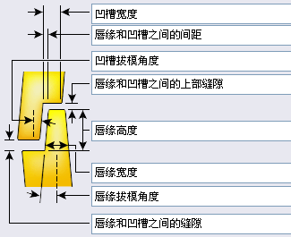 当您选择要生成唇缘和凹槽的实体时,会出现本部分。在这里可以设定控制唇缘和凹槽以及它们之间接口的参数。