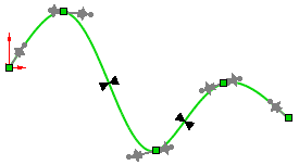 按一下加入相切控制 (不規則曲線工具工具列) ,或按一下工具、不規則曲線工具、加入相切控制來顯示新的控制點。