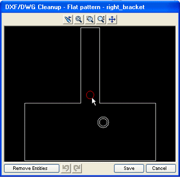 新的 DXF/DWG 輸出 PropertyManager 可將鈑金本體輸出至 .dxf 或 .dwg 檔案。您亦可輸出諸如彎折線、草圖及成形工具之類的圖元。預覽會顯示您的選擇,可讓您移除不想要的圖元,例如鑽孔或切除部分。