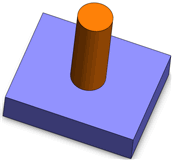 依相交點分割面。兩個本體必須具有接觸邊線或接觸面。若要分割板件的頂面,首先選擇圓柱面作為分割面,再選擇板件的頂面作為要分割的面。板件的頂面便會分割成兩個面。