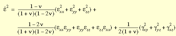 總應變向量 e 是用來換算有效應變 e,以便從使用者定義的材料 (應力-應變) 曲線求出正割模數。在三維空間的情況中: