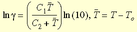 其中 g t 是減少的時間,而 g 是轉換函數。使用 WLF (Williams-Landel-Ferry) 方程式概算出下列函數: