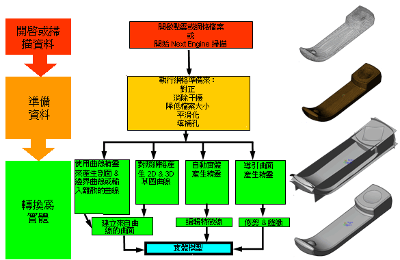 使用 SolidWorks 軟體的 ScanTo3D 功能,您可以開啟來自任何掃描器的掃描的資料(網格或點雲檔案),或來自數學軟體的曲線資料,準備資料,然後將其轉換為曲面或實體模型。