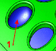 在模型中僅允許有一個封閉曲面特徵。因此,在一個特徵中,您必須為每一個貫穿孔指定接觸、相切或無填補等填補類型。