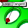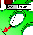 除了簡單的迴圈外,可將相切用於較複雜的貫穿孔,在貫穿孔中軟體會收集成對的邊線,並建構且縫織一系列的平坦曲面,如下圖所示。