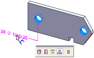 特征选择器是浮动的、上下文相关的工具栏,您可以使用它区分不同的 DimXpert 特征类型。可用的特征选择器选择取决于所选的面和激活的命令。特征选择器可用于所有特征的选择: