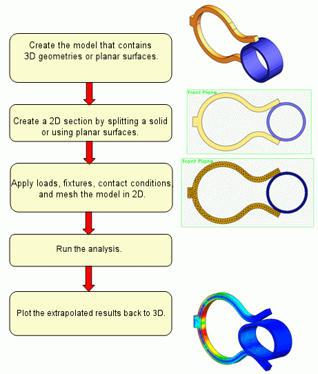 在選擇了 2D 簡化的假定之後,解決問題的工作流程對所有選項都是類似的。