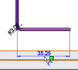 - 使用智慧型尺寸工具(),選擇要偏移的管路,然後選擇參考物件。在下圖中,使用者選擇了要偏移的管路段以及底面為參考。