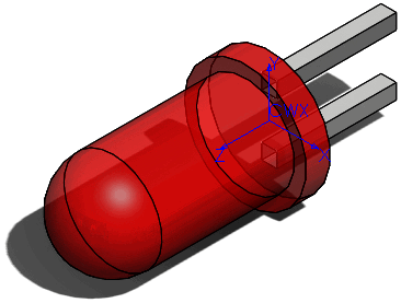 無需定義名為 CWX 的座標系統,您即可將 LED 新增至 CircuitWorks 資料庫。在於 CircuitWorks 中建立 LED 零組件之後,將其插入至電路板組合件時,LEDs 是水平的。
