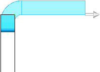 從虛擬交角而來的彎折 。會保留至原始邊線的尺寸,且將改變彎折材料的狀態來自動與凸緣的終止型態相配合。
