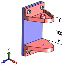 Creare uno studio per determinare la distanza dalla funzione Misura da alla faccia interna della forcella superiore, illustrata dalla quota 100. |