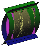 2つの円筒形と2つの b-スプライン サーフェスを抽出したモデル |