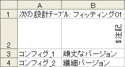 テーブルの本体セルに、コンフィギュレーションの説明を入力します。 もしセルが空白のままなら、コンフィギュレーション名は、PropertyManagerの詳細(Description)に現われます。