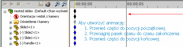 Przeciągnąć pasek czasu, aby ustawić czas trwania sekwencji animacji.