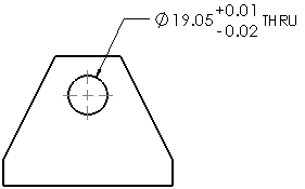 Kliknąć krawędź otworu a następnie kliknąć w obszarze graficznym, aby umieścić objaśnienie otworu.