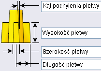 Szerokość płetwy ustawia szerokość przy bazie płetwy, przed zastosowaniem pochylenia.