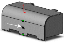 W tym przykładzie dodano relację Punkt środkowy pomiędzy linia konstrukcyjną a początkiem układu współrzędnych szkicu narzędzia formowania. |