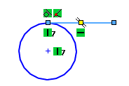 Narzędzie szkicu jest aktywne, dlatego na drugim łuku wyświetlane są kwadranty przyciągania szkicu. |