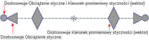 Uchwyt splajnu zawiera różne typy uchwytów sterujące obciążeniem i kierunkiem (wektorem) splajnu w danym punkcie. Można sterować obciążeniem i kierunkiem: