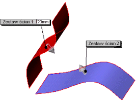 Kliknąć w Zestaw ścian 2 a następnie w obszarze graficznym wybrać drugą ścianę do zaokrąglenia. O ile to konieczne kliknąć Odwróć normalną ściany