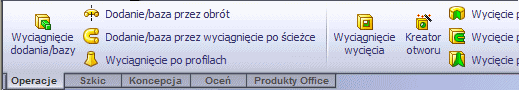 Po kliknięciu karty poniżej Menedżera poleceń, jest on jest uaktualniany, aby wyświetlić dany pasek narzędzi. Na przykład jeżeli klikniemy kartę Szkice, pojawi się pasek narzędzi Szkic.