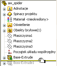 Należy przeciągnąć pasek w górę i w dół drzewa operacji FeatureManager, aby przejść do przodu lub do tyłu w sekwencji regeneracji.