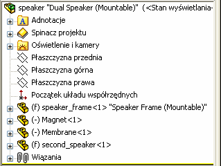 Na górze drzewa operacji FeatureManager kliknąć prawym przyciskiem myszy nazwę części, złożenia lub rysunku i wybrać Wyświetlanie drzewa, Pokaż opisy komponentów.