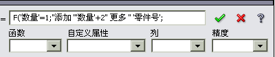 - 输入字符串和列标题完成计算定义,使之读起来如此:IF('数量'=1;"添加"'数量'+2" 更多 " '零件号';"标准")。