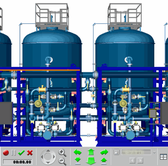 您可以使用走查功能浏览或生成工厂或其他系统 3D 几何体的视频。您可以一边“查看”系统几何体,一边进行操控。您可以保存看到的内容,并在其它算例中回放。