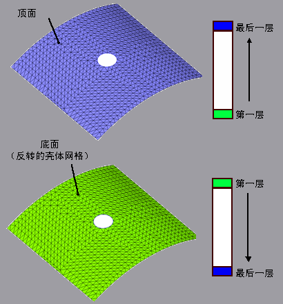 程序定位外壳底面的第一个层和外壳顶面的最后一个层。翻转网格会反转堆栈顺序。下图中底面为绿色(默认颜色为橙色)。
