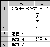 如果先生成了子配置,则您无法在系列零件设计表中指定父配置,除非父配置早已在模型中存在。