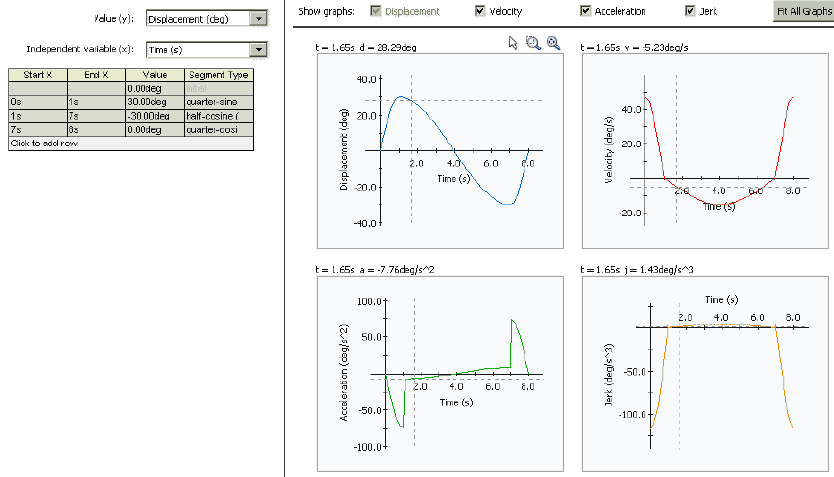 您可以使用函数编制程序从导入的数据集定义马达或力配置文件。您还可以使用函数编制程序从数学表达式或从相邻段的插值函数定义马达或力配置文件。在马达配置文件中,您可以指定时间、循环角度或任何结果作为独立变量。