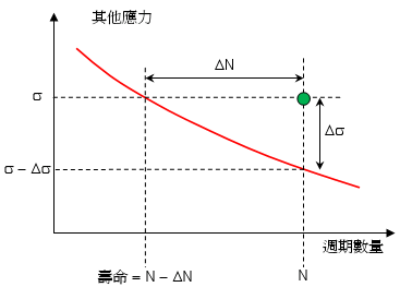• 點落在曲線之上。在該位置預設疲勞失敗。