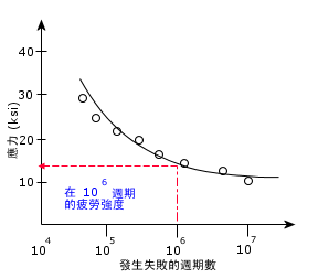 SN 曲線係根據平均疲勞壽命或指定的失敗或然率。產生某一材料的 SN 曲線需要執行許多次測試,以便在統計上改變其他替換應力、平均應力(或應力比例)以及計算週期數。