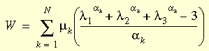 其中,li 是主伸展率,aimi 是材料常數,而 N 是函式中的項數,此乃公認為描述橡膠類材料的大幅變形之最佳函式。Ogden 模型的公式中使用到的罰函數採取 Mooney Rivlin 模型中使用的形式。實際使用的應變能函數則是將 Ogden 函式加以修改後的表達式: