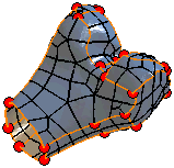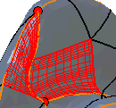 ScanTo3D 產生的曲面是由補面所組成(理想情況為四面)。補面群組會在曲面上形成區域。特徵線路會在區域間形成邊界。