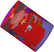 目標是要分開特定設計意圖的區域,例如:是平面、圓柱、圓錐、b-surfaces 的區域。每個特定的區域必須為其本身的次網格,會由不同的色彩標示出來。然後您可以使用塗料工具來分割次網格或接合分開的次網格,以進一步實現設計的意圖。被指定為 b-surfaces 的區域需要特別的注意來移除不適當的曲率及鋸齒狀的邊線。