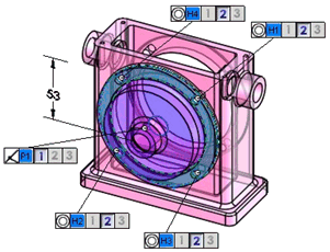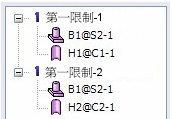 您可以定義多個限制作為第一、第二或第三個限制。例如,一個組合件可能要您結合多個特徵,例如,兩端受限於一對搪孔的軸。