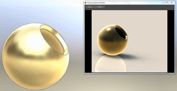 PhotoView 預覽視窗可讓您預見對 SolidWorks 模型的變更是如何影響模型的最終計算影像。