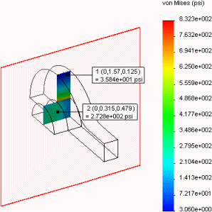Vyberte umístění na plochách protnutých rovinou řezu a zobrazte výsledky v grafické oblasti a pod položkou Výsledky v PropertyManageru.
