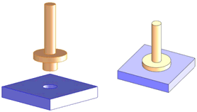 最初の拘束(primary constraint)には、フランジの平面を使用します。 この平面はプレートと同一平面上の合致状態になり、ピンが穴の中心にきます。