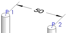 2つのピンの上に作成された参照点を使用して測定を定義。 |