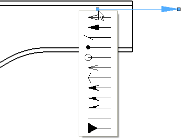도면 시트의 아무 곳에서나 멀티 조그 지시선을 시작할 수 있습니다. 도면 시트에서 아무 곳이나 더블 클릭하여 지시선을 끝낼 수도 있습니다. 지시선이 아무런 요소에 붙어있지 않으면, 끝점 화살표 형식은 문서 속성 - 주석에서 부착안함 옵션에 따릅니다. 바로가기 메뉴에서 끝점 화살표 형식을 다른 형식으로 선택할 수 있습니다.
