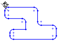 예를 들어, 돌출의 모서리선을 필렛할 경우 처음부터 필렛을 포함하는 복잡한 스케치를 그리거나(A) 간단한 스케치를 그리고 필렛은 나중에 별도의 피처로 추가할 수 있습니다(B).