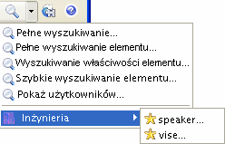 - W oknie dialogowym wyszukiwania SolidWorks Enterprise PDM, wybrać typ wyszukiwania, który ma być użyty.