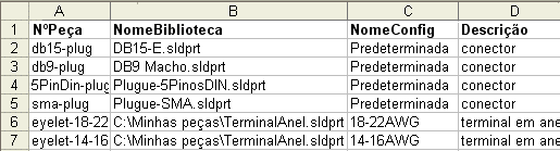 Eis um exemplo de um arquivo do Excel para seis componentes.