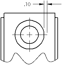 As marcas de centro estão disponíveis como marcas únicas nos padrões lineares ou circulares. Os padrões lineares podem incluir linhas de conexão. Os padrões circulares podem incluir linhas circulares, linhas radiais e marcas de centro da base. Os atributos de exibição incluem tamanho da marca, linhas estendidas e especificação de para as linhas de marca de centro.
