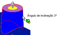 Neste exemplo, você já aplicou a inclinação de 3 graus às quatro faces de cor laranja (duas em cada lado do cilindro horizontal).