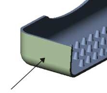 Esta opção é usada somente para analisar as faces curvas do modelo onde foi adicionada uma inclinação. Com base no ângulo de referência, alguns pontos da superfície curva atendem aos critérios, outros não. Em alguns modelos que contém faces curvas, todas as áreas ao longo da curva podem atender ou exceder o ângulo de referência. Nesses casos, selecionar Localizar faces íngremes não registra nenhum resultado, pois qualquer ponto ao longo da face curva iguala ou excede o ângulo de referência.